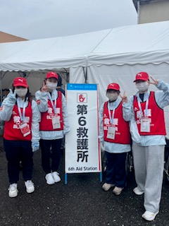 「初めての救護ボランティアで不安なこともありましたが、沿道で応援している時にランナーの方々の「ありがとう」という言葉を受けて、看護に携わることへの関心が高まりました。今回は実際に救護を行う場面はありませんでしたが、天候や体調の変化によって、いつでも緊急対応が必要になることを学びました。今後は、どんな状況でも冷静に対応できる力を身につけたいと思いました。」